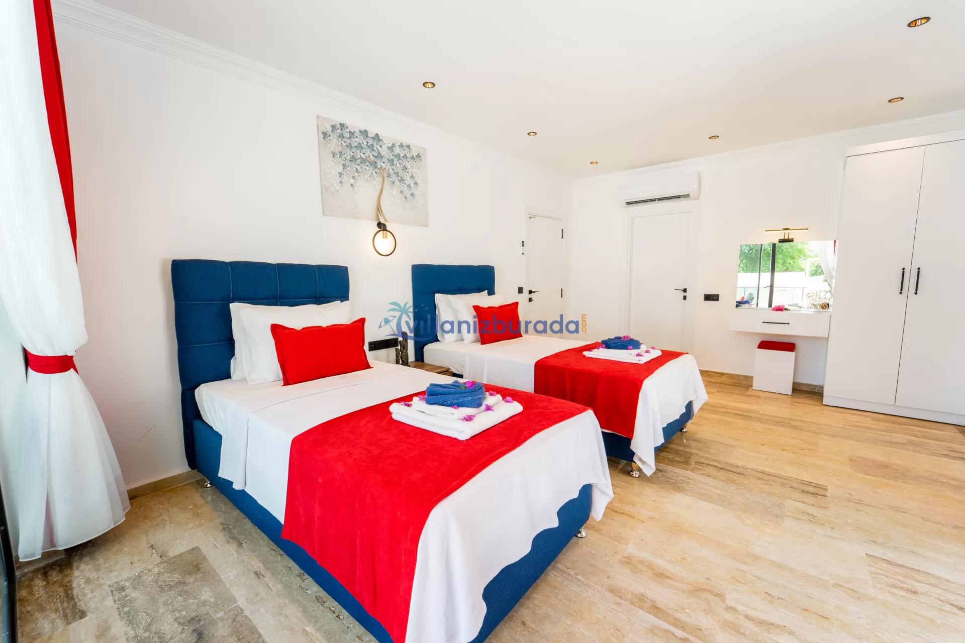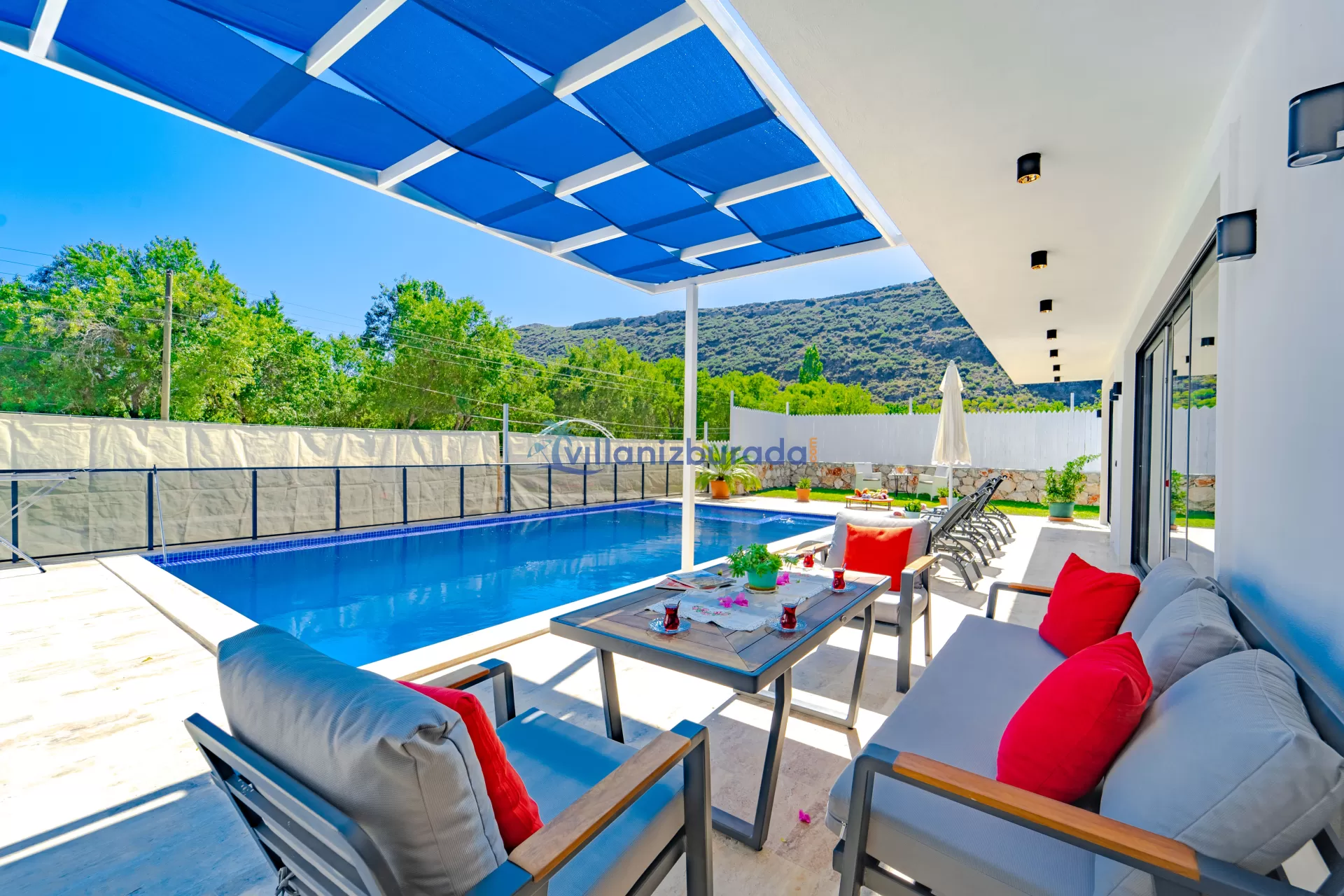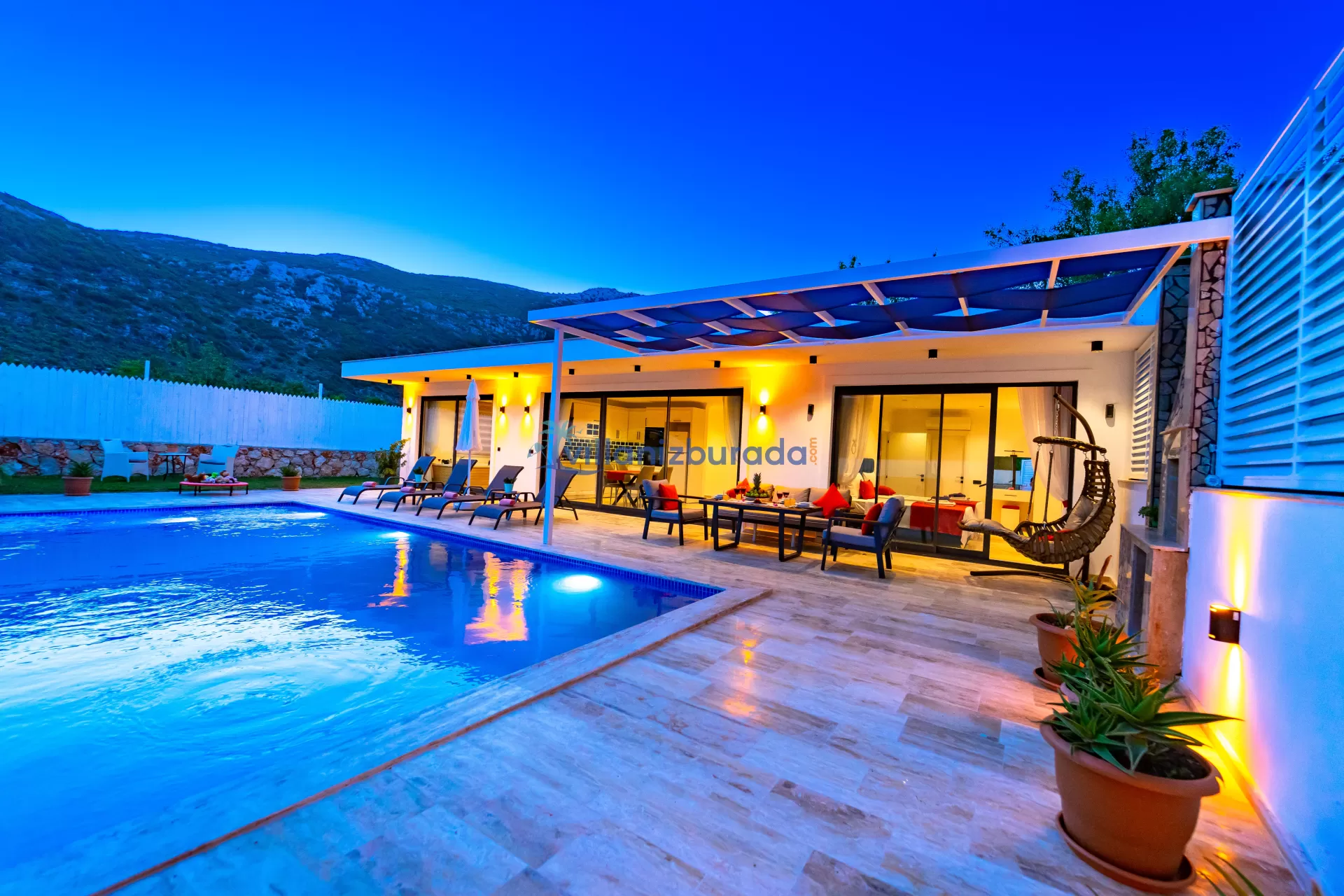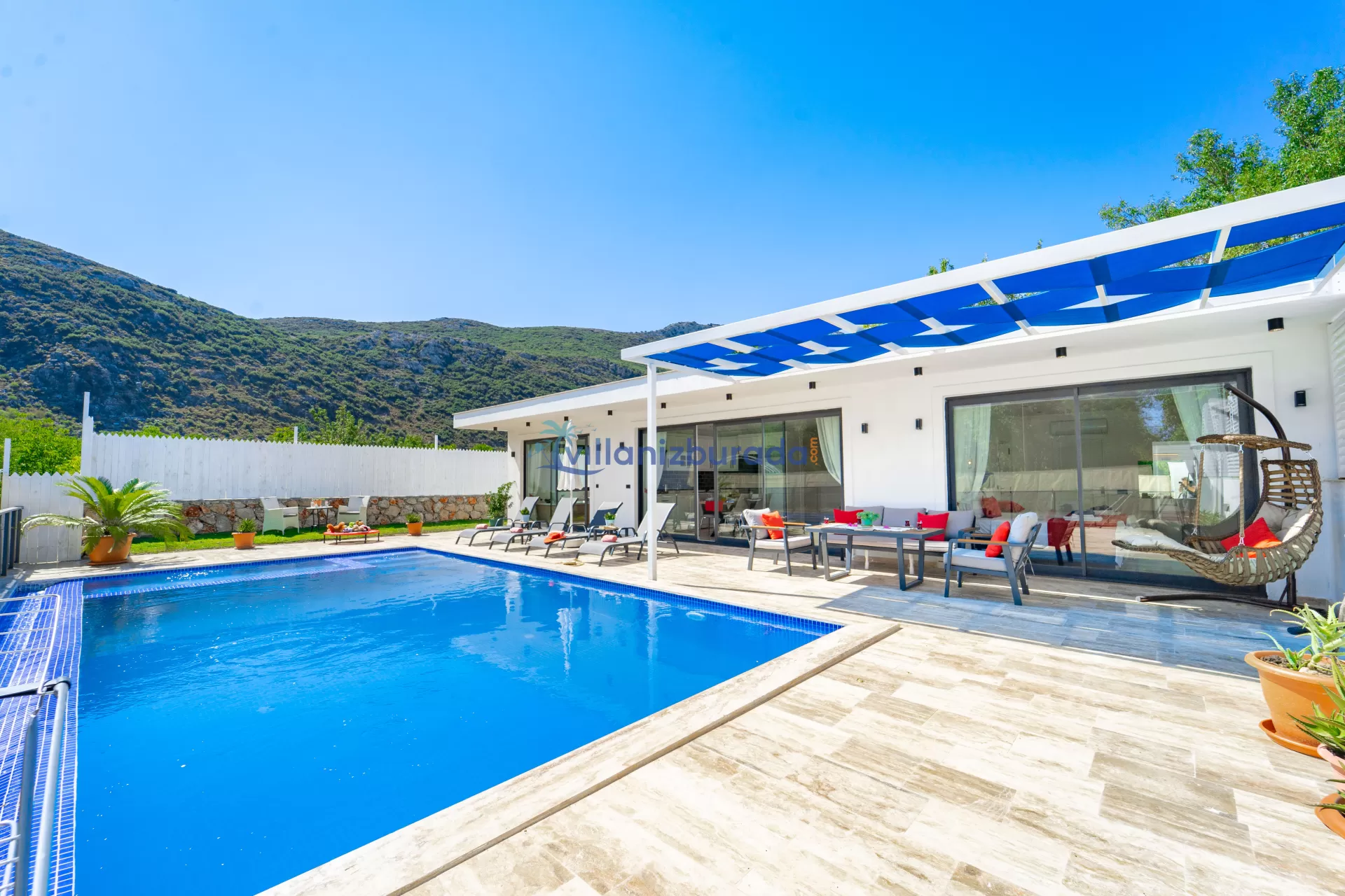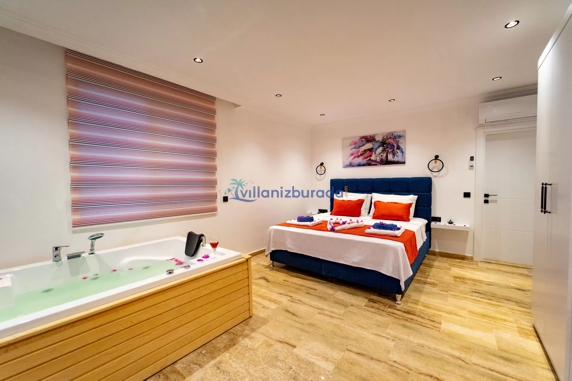 Es handelt sich um eine Ferienvilla mit 2 Schlafzimmern und einer Kapazität für 4 Personen in der Region Antalya/Kaş/Kalkan/Bezirgan. Unsere Villa verfügt über einen privaten Pool und der Poolbereich ist geschützt. Es gibt auch ein Kinderbecken sowie einen großen Pool. Im Hauptschlafzimmer unserer Villa gibt es auch einen Doppel-Whirlpool, der Platz für 4 Personen bietet.