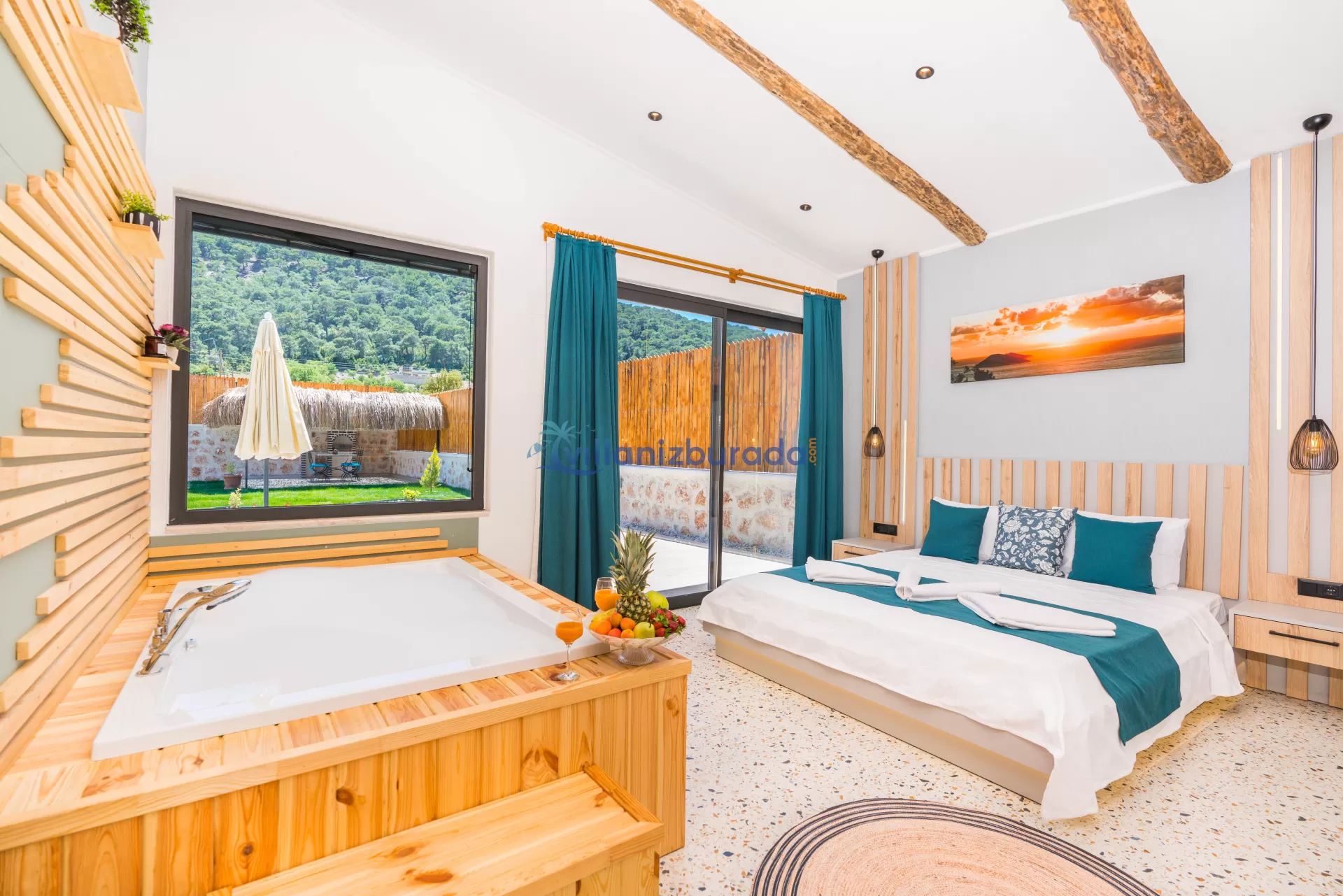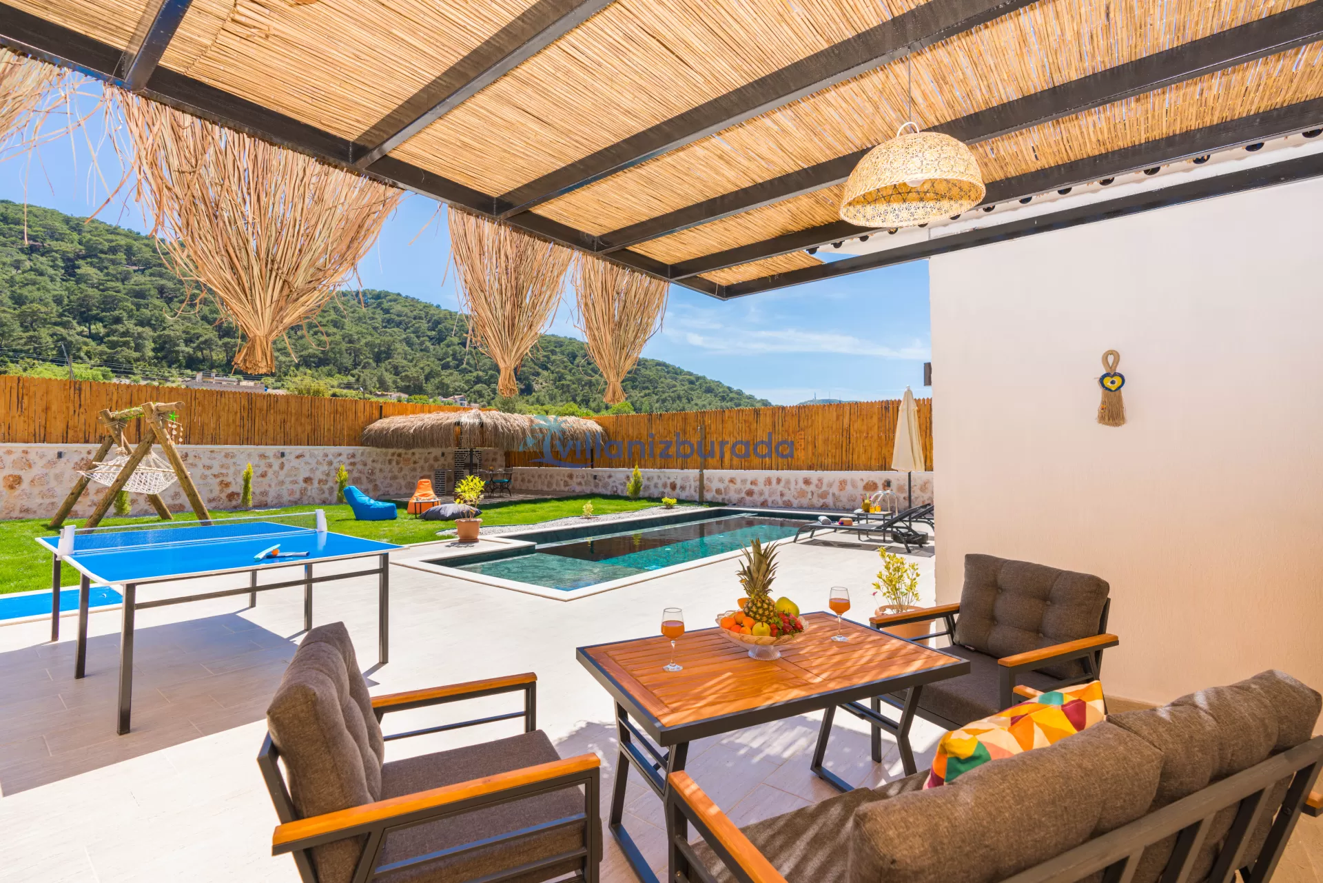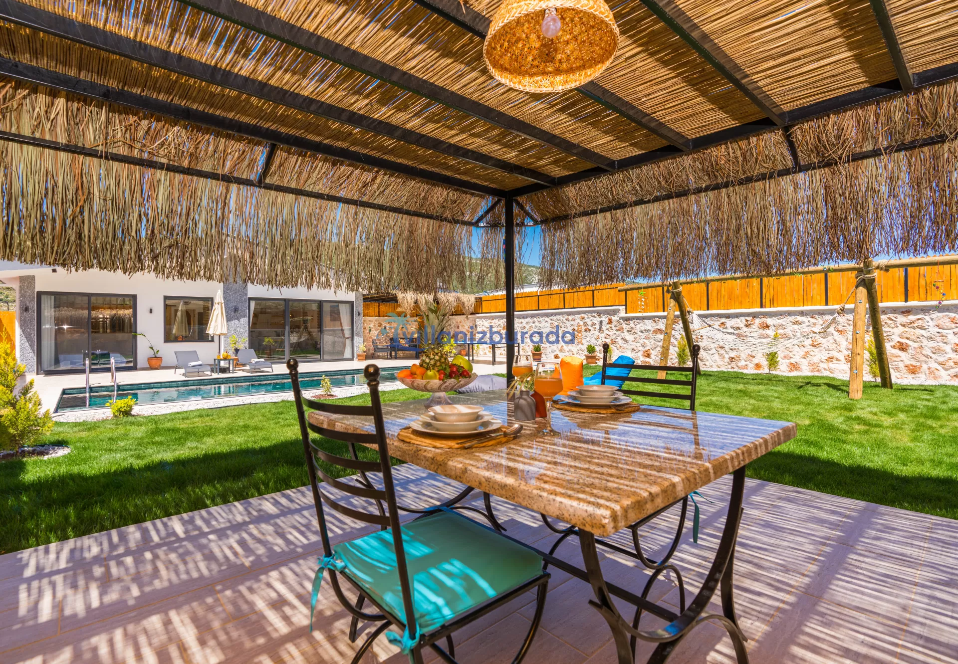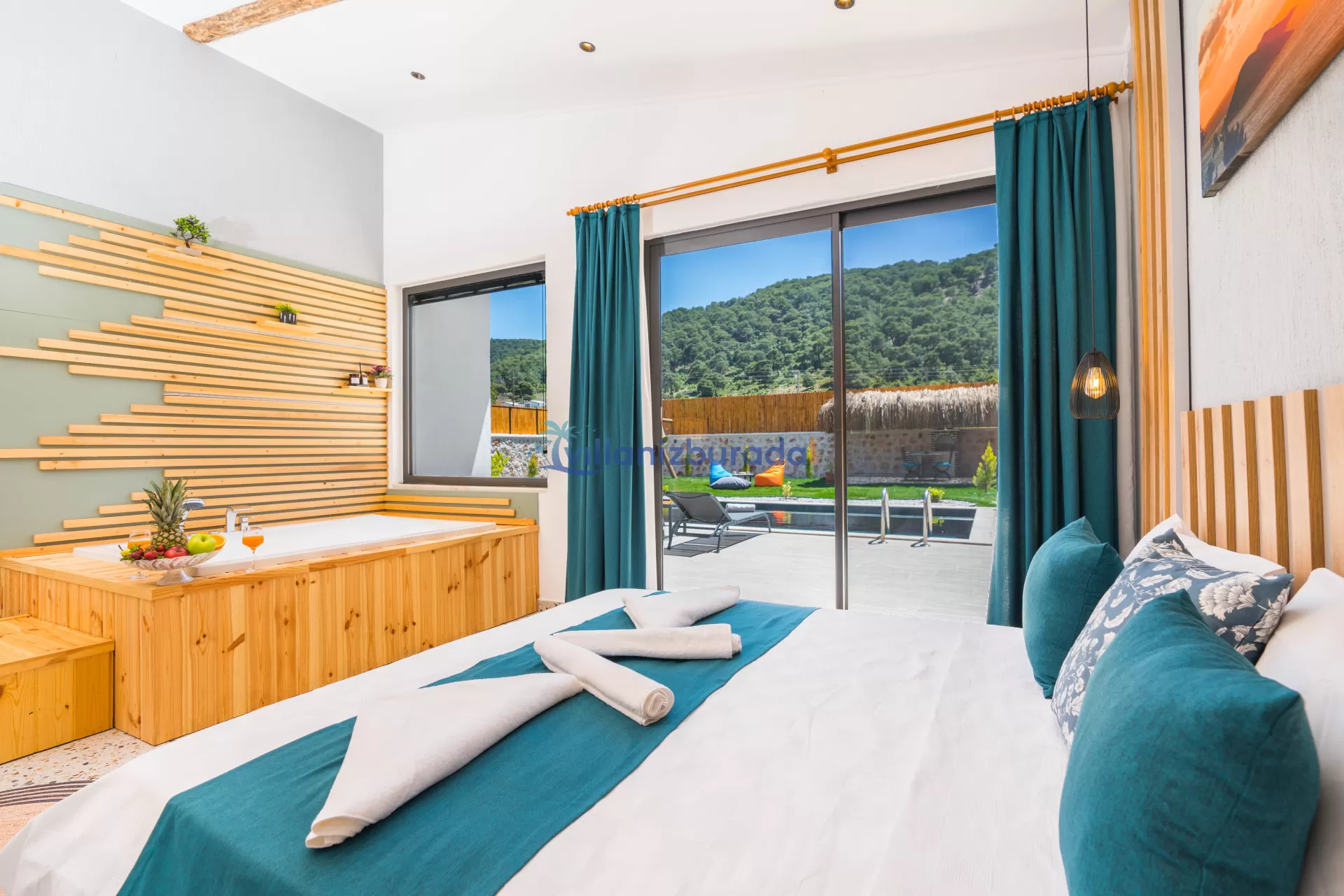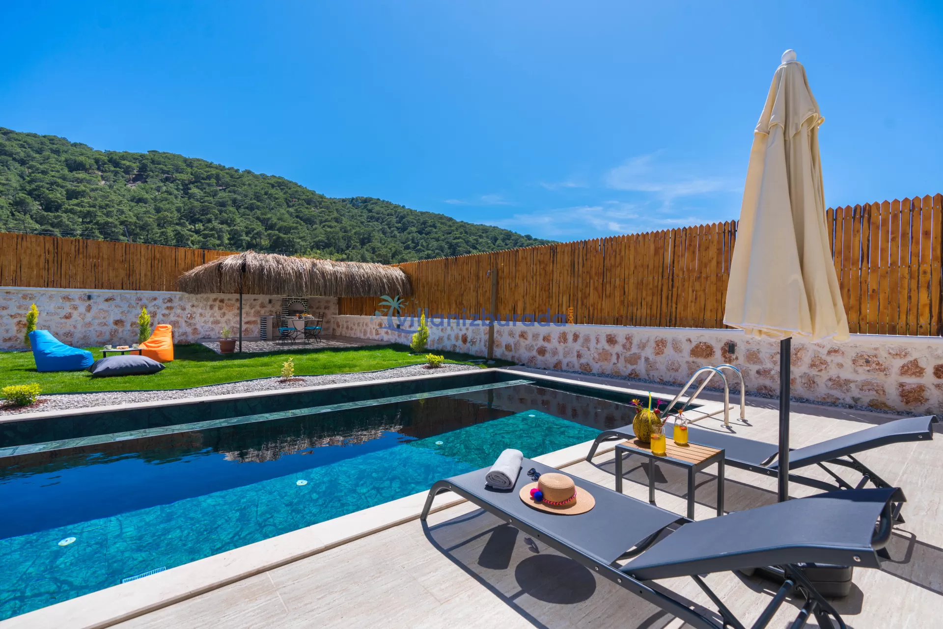 Villa Apollon is a garden villa with a capacity of 2 people, located in Kalkan Sarıbelen. You will be able to feel at home thanks to the modern design of our villa designed for you, our valued guests. Thanks to its large pool terrace and garden area, it has an environment where you can have fun with your loved ones. You will be able to relieve all the tiredness of the year thanks to the private pool and jacuzzi in our villa. For our guests who want to holiday as two couples, there is Villa Daphne next to our villa.