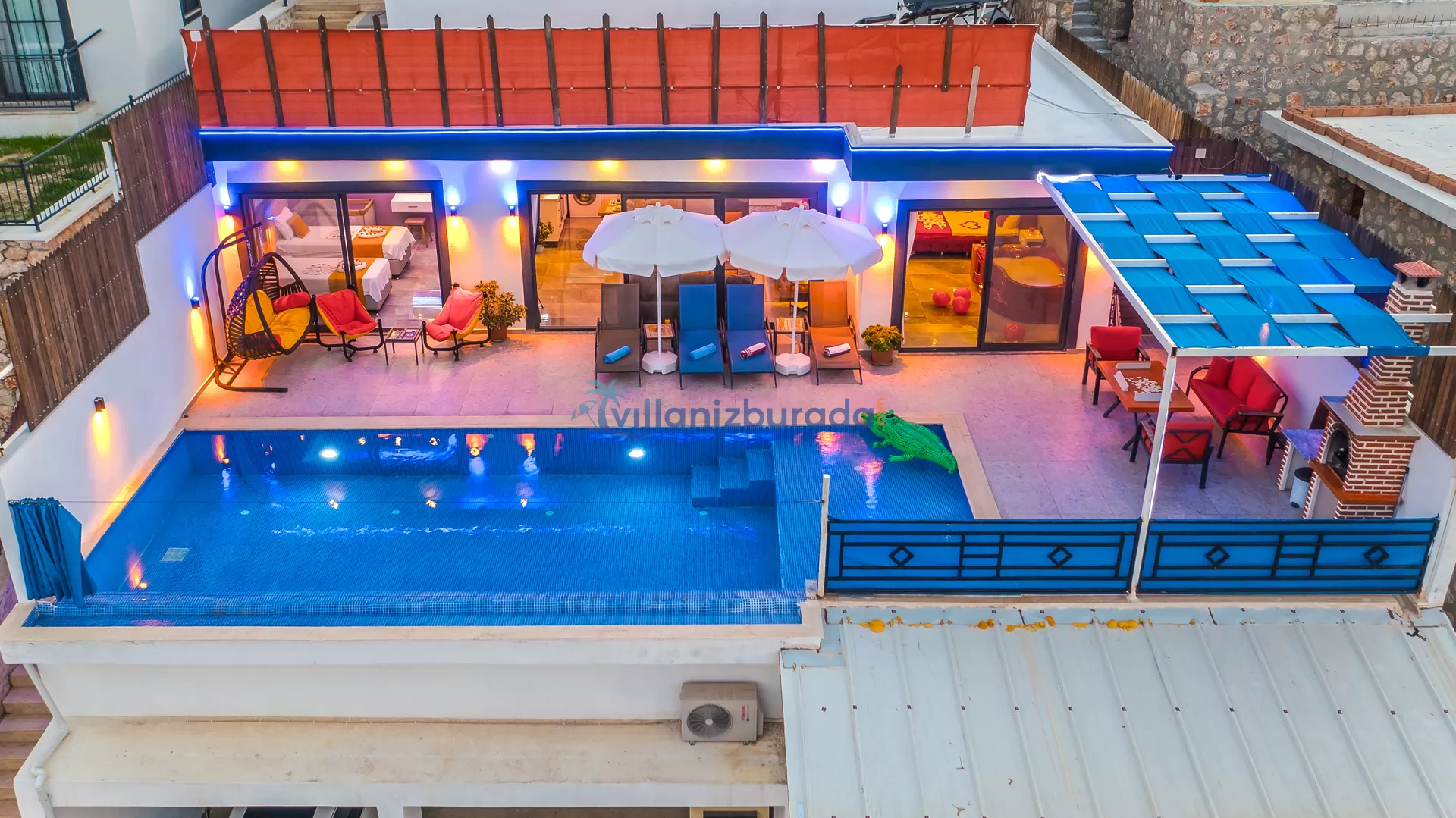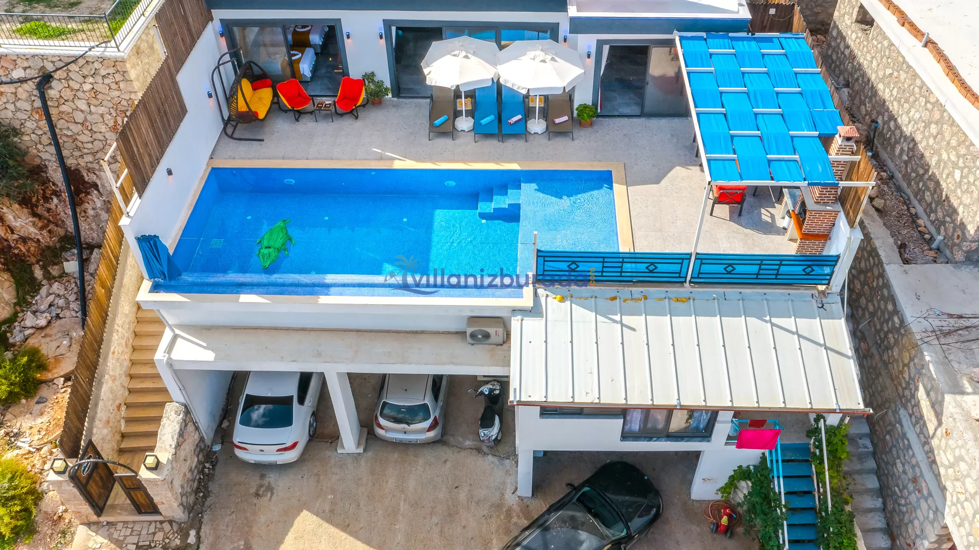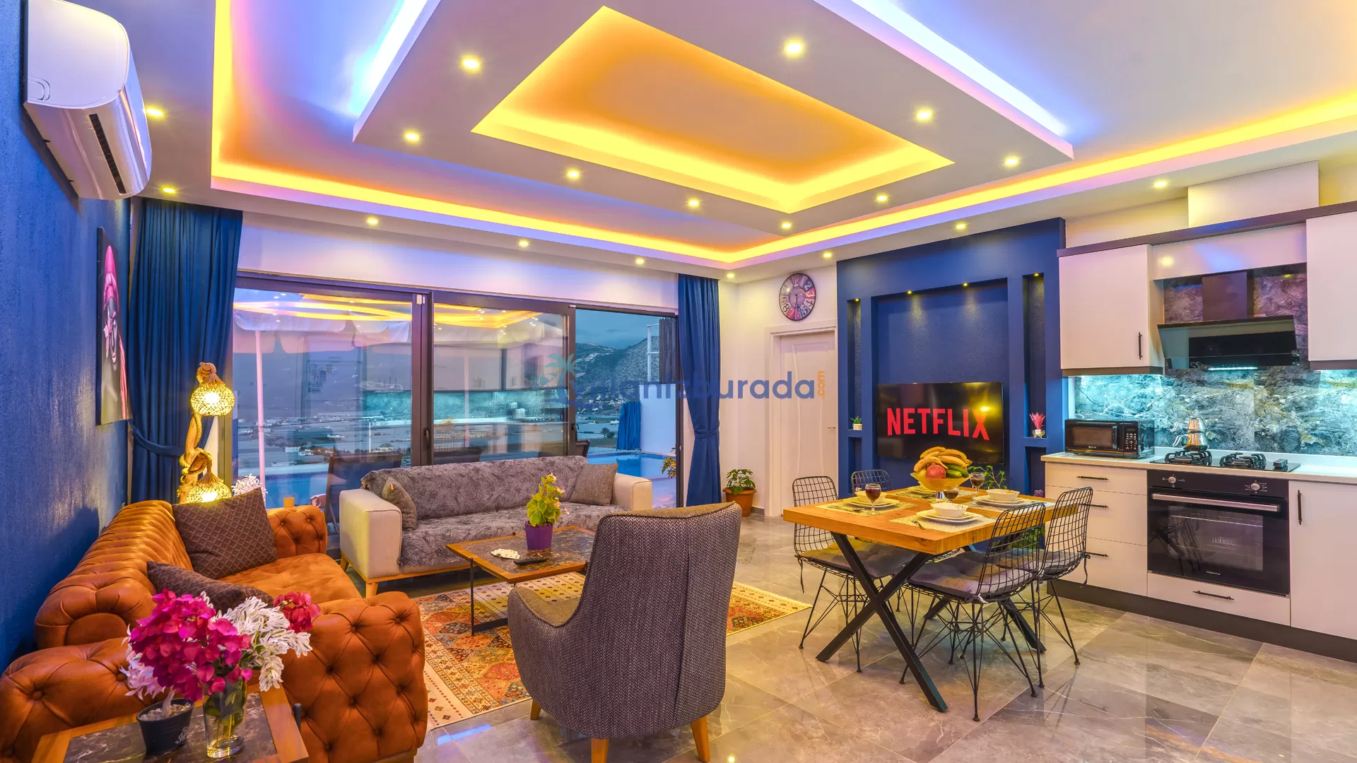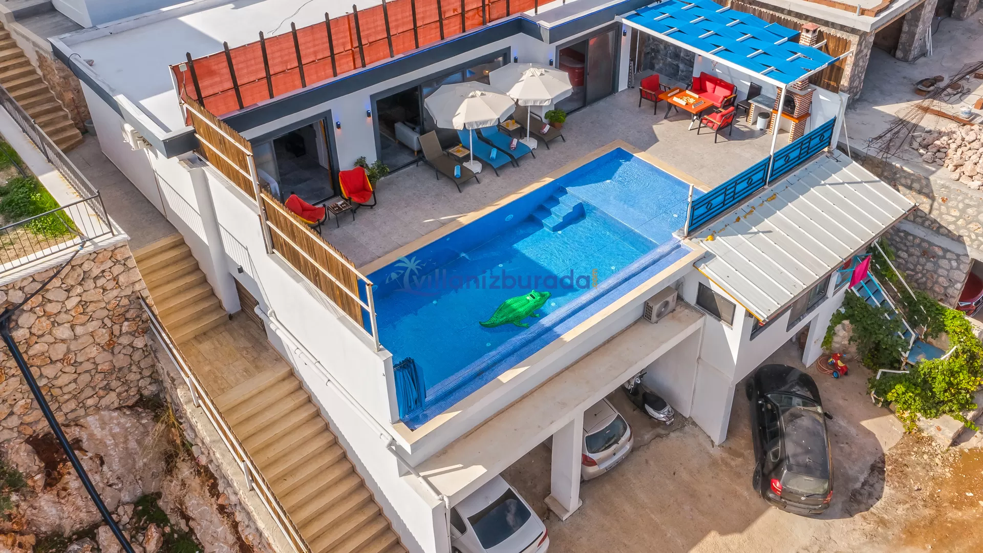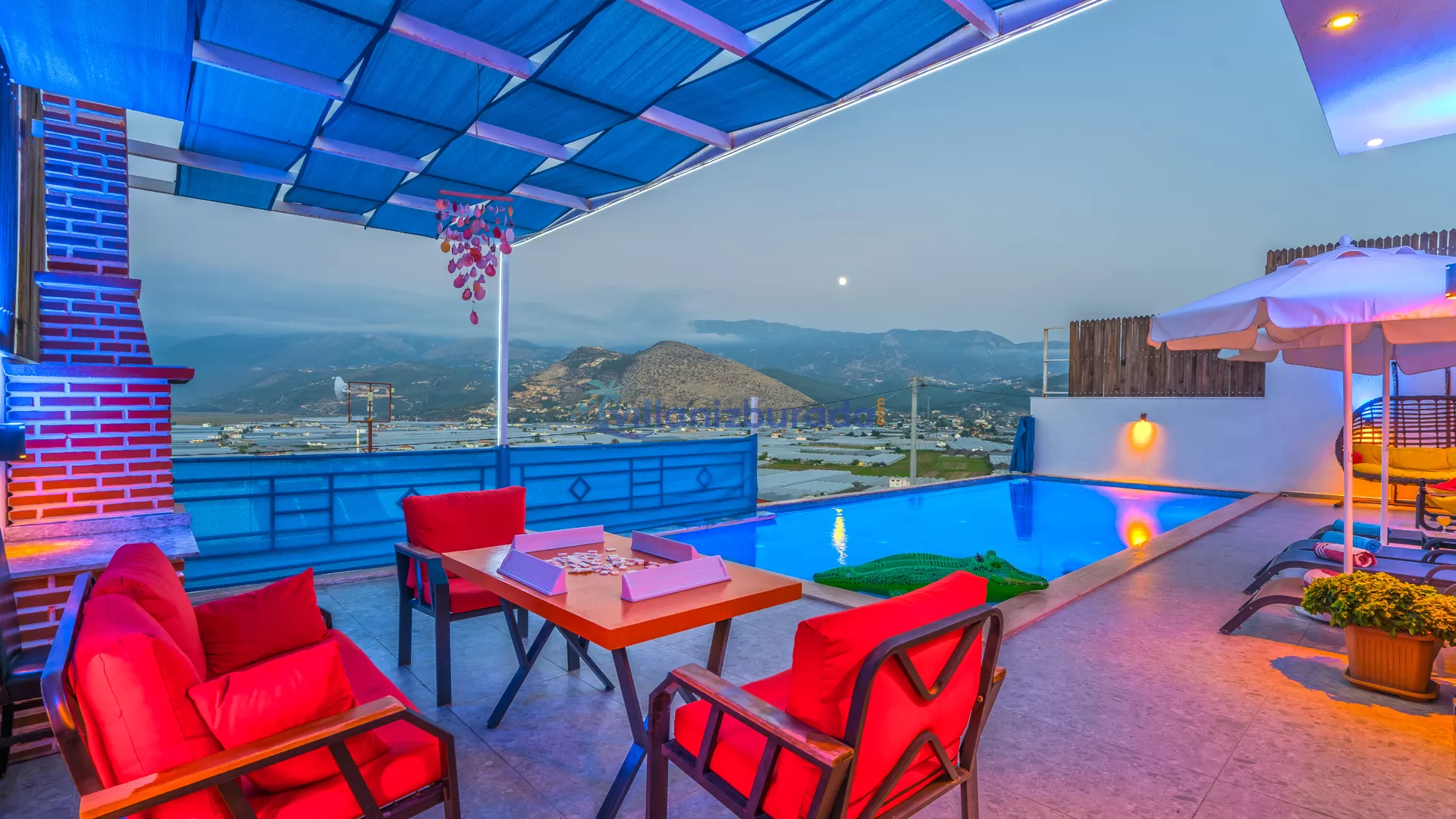 It is located in Yeşilköy location of Kalkan region. Due to its location, it is among the options with nature views and is approximately 10 minutes away from Kalkan city center and the sea by private vehicle. It has 2 bedrooms and can accommodate a total of 4 people. Villa Göktaşı, which has twin villas, is located on the side. It is very suitable for 2 families who want to holiday together.