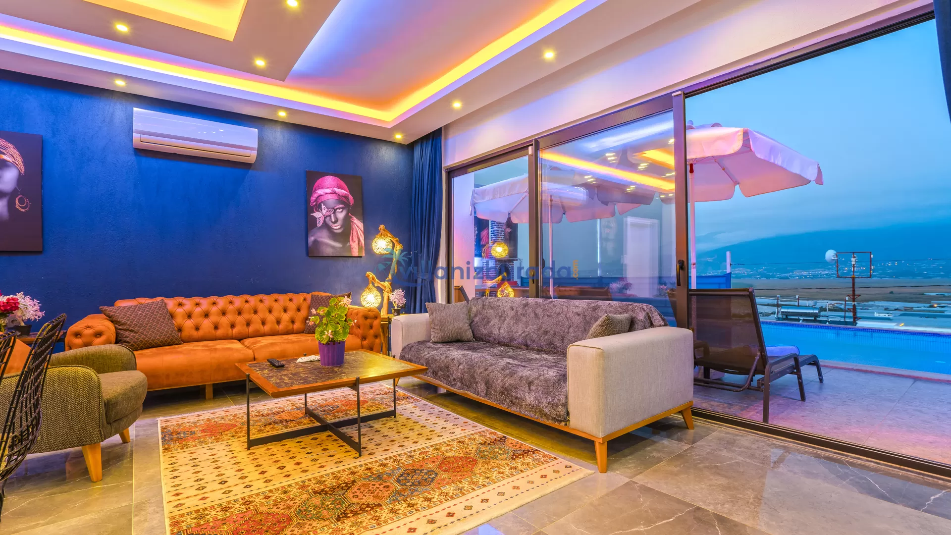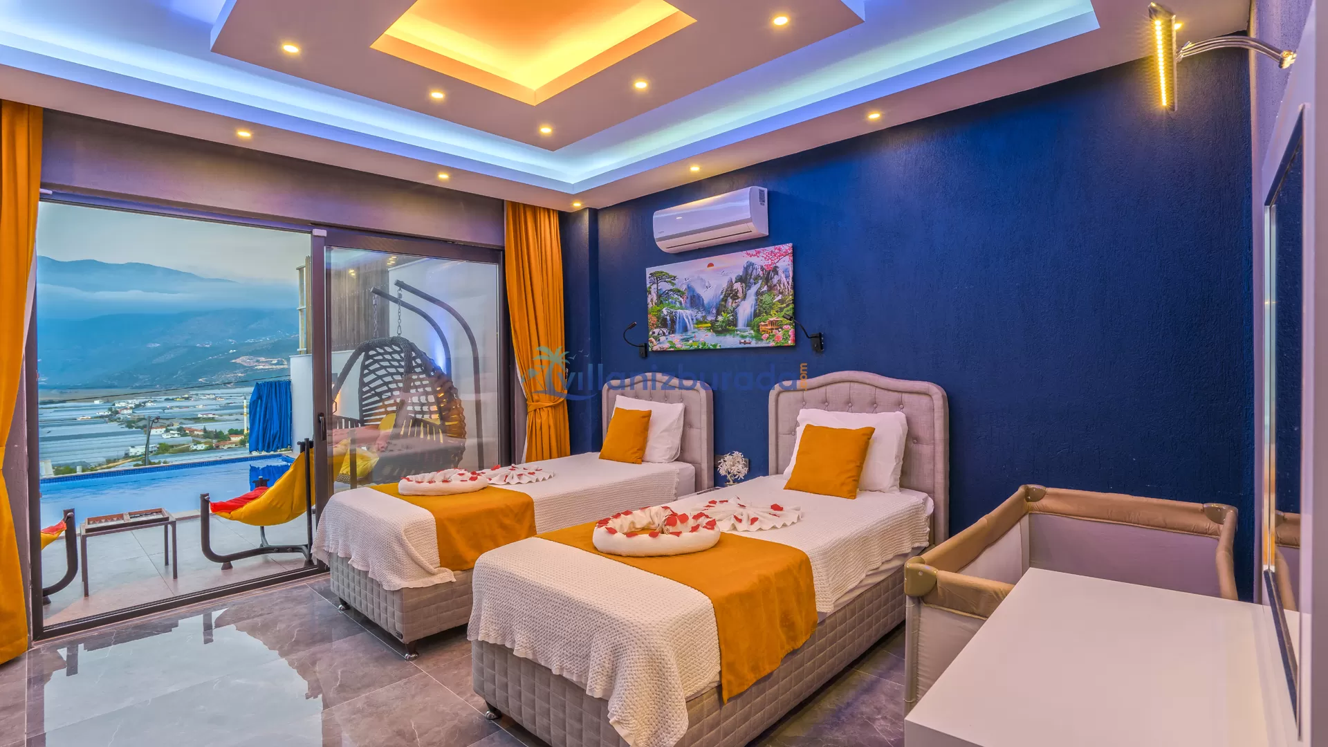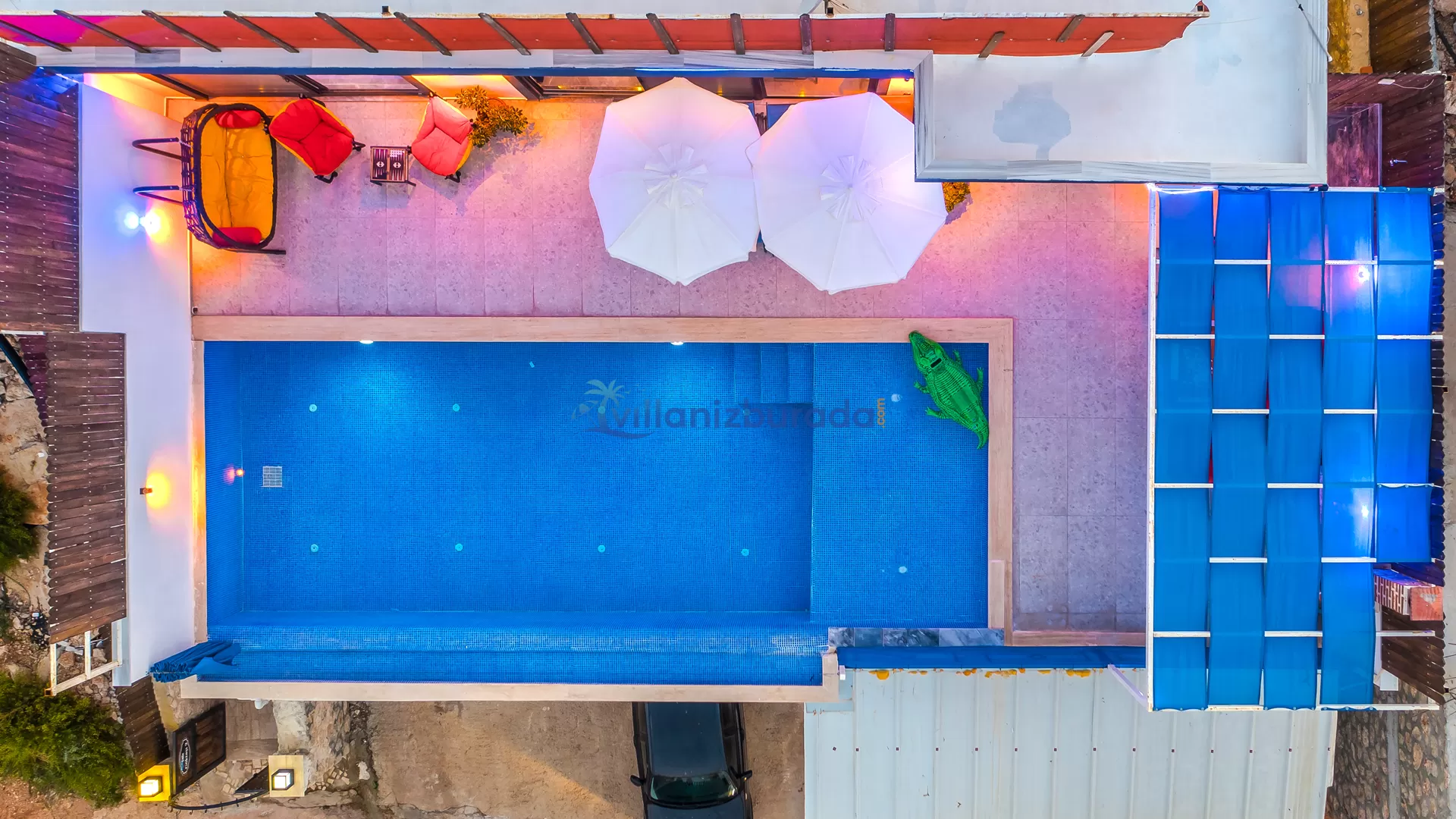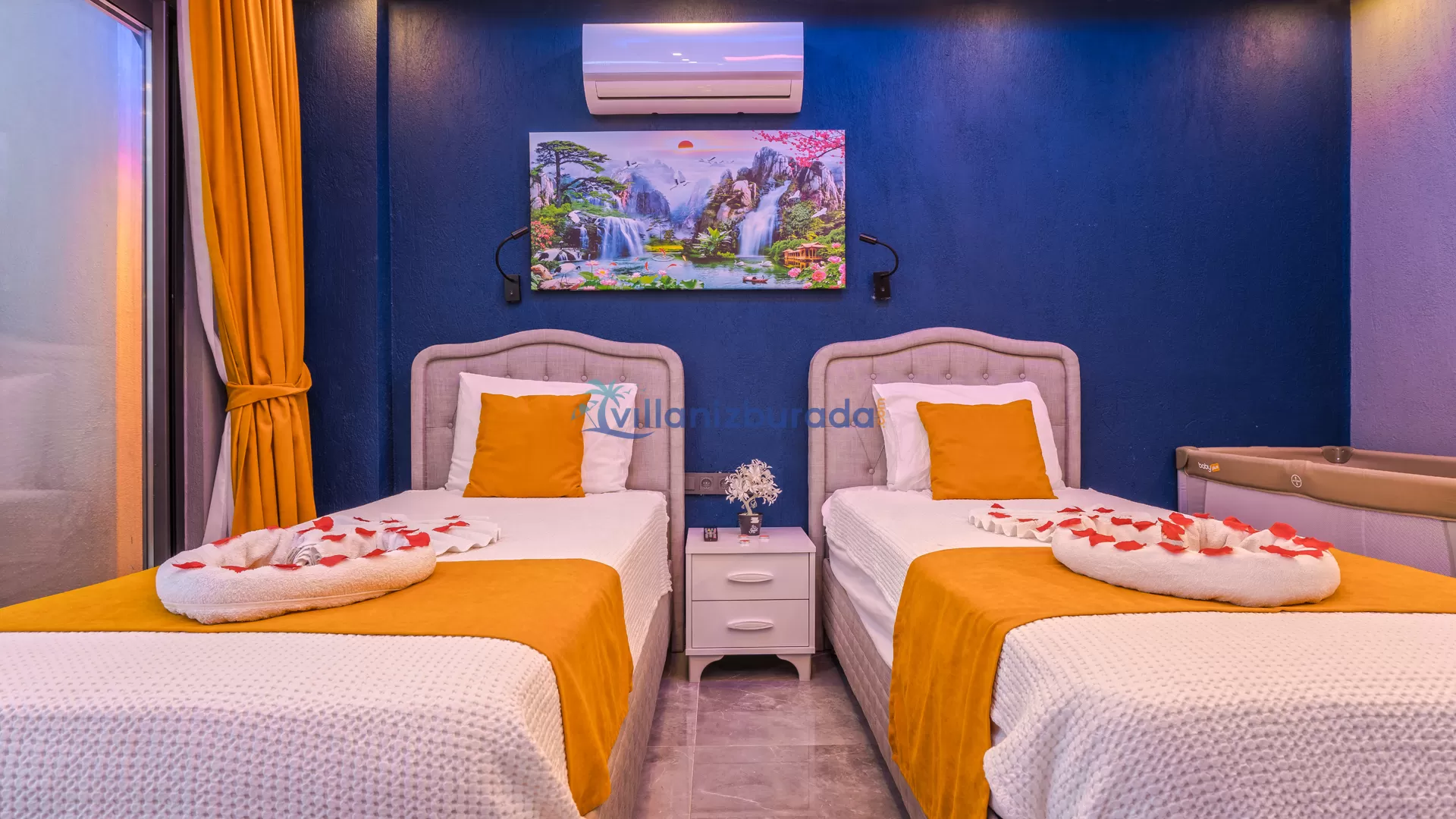 It is located in Yeşilköy location of Kalkan region. Due to its location, it is among the options with nature views and is approximately 10 minutes away from Kalkan city center and the sea by private vehicle. It has 2 bedrooms and can accommodate a total of 4 people. Villa Göktaşı, which has twin villas, is located on the side. It is very suitable for 2 families who want to holiday together.