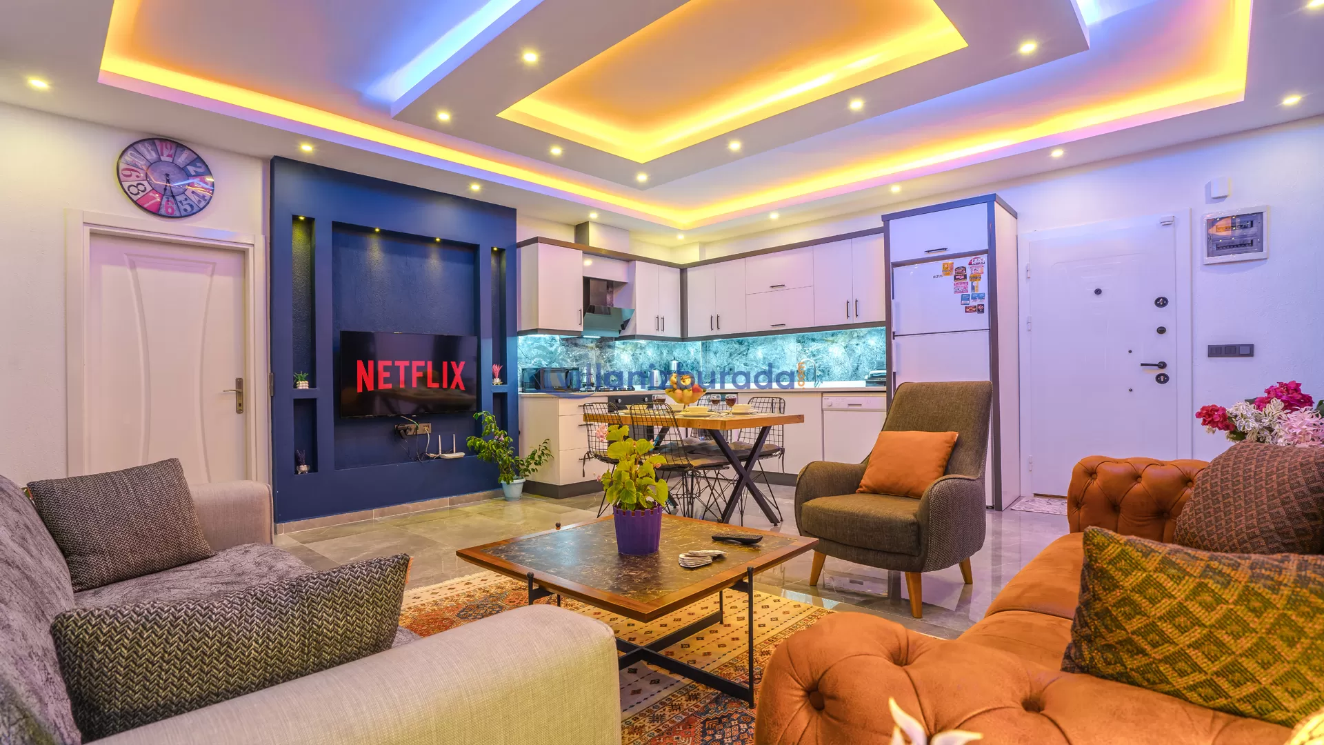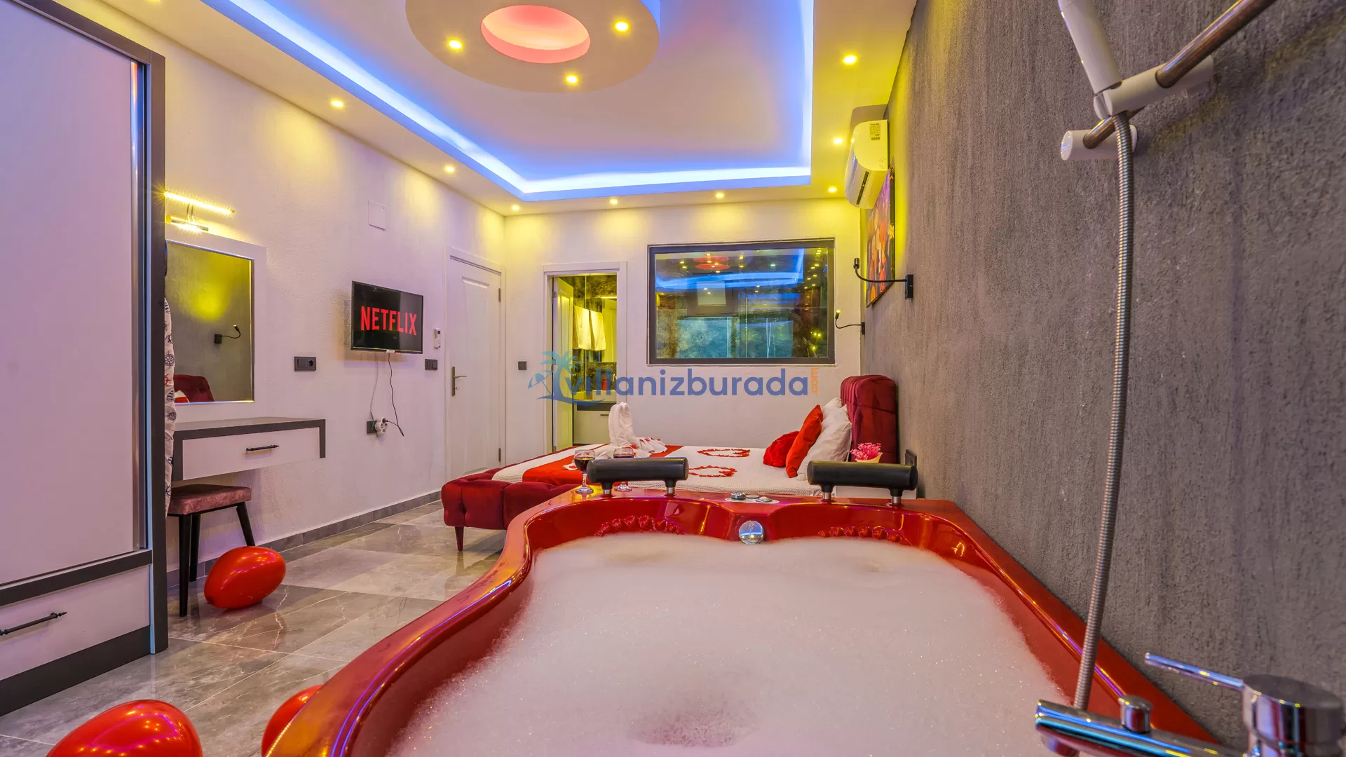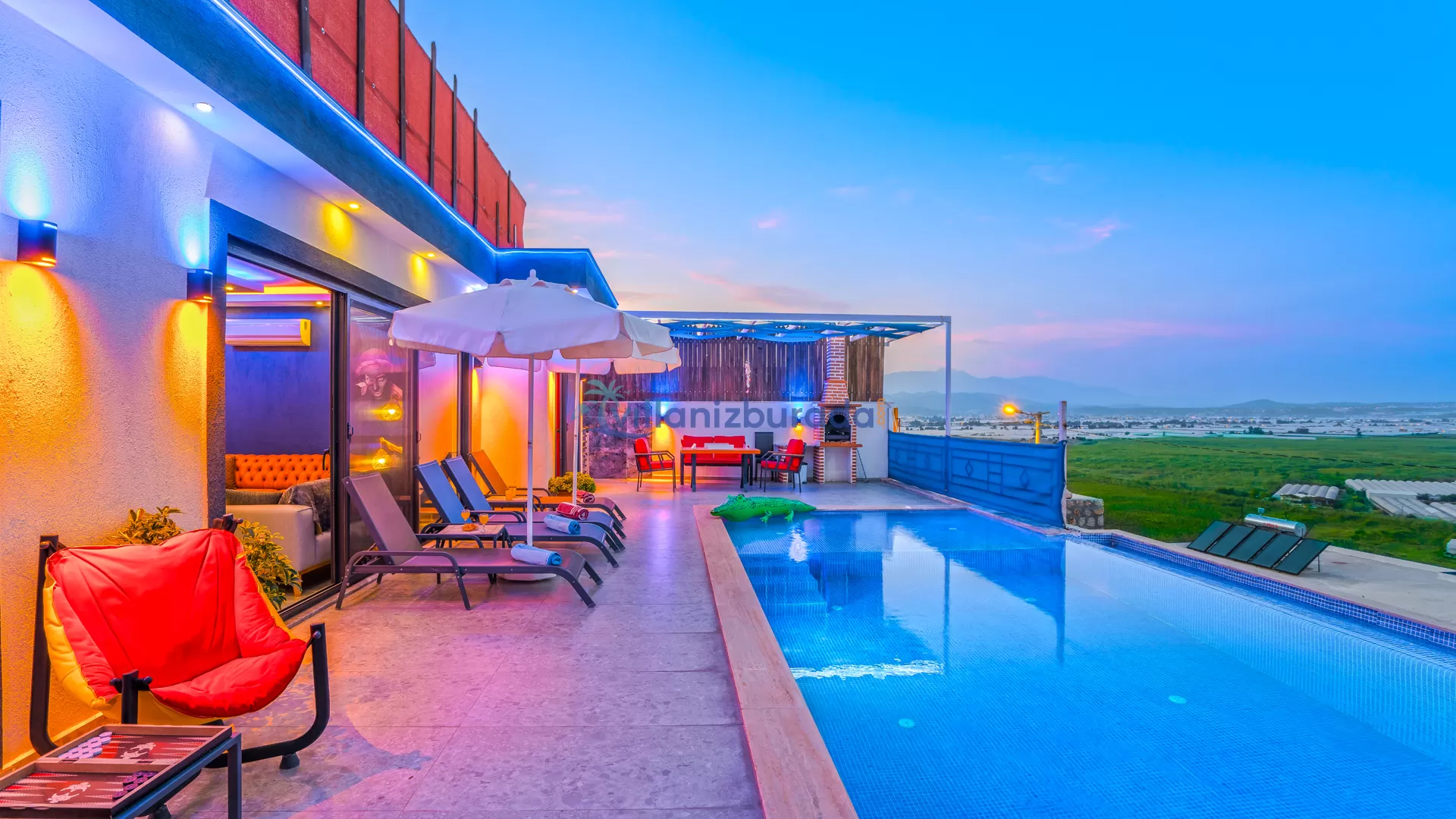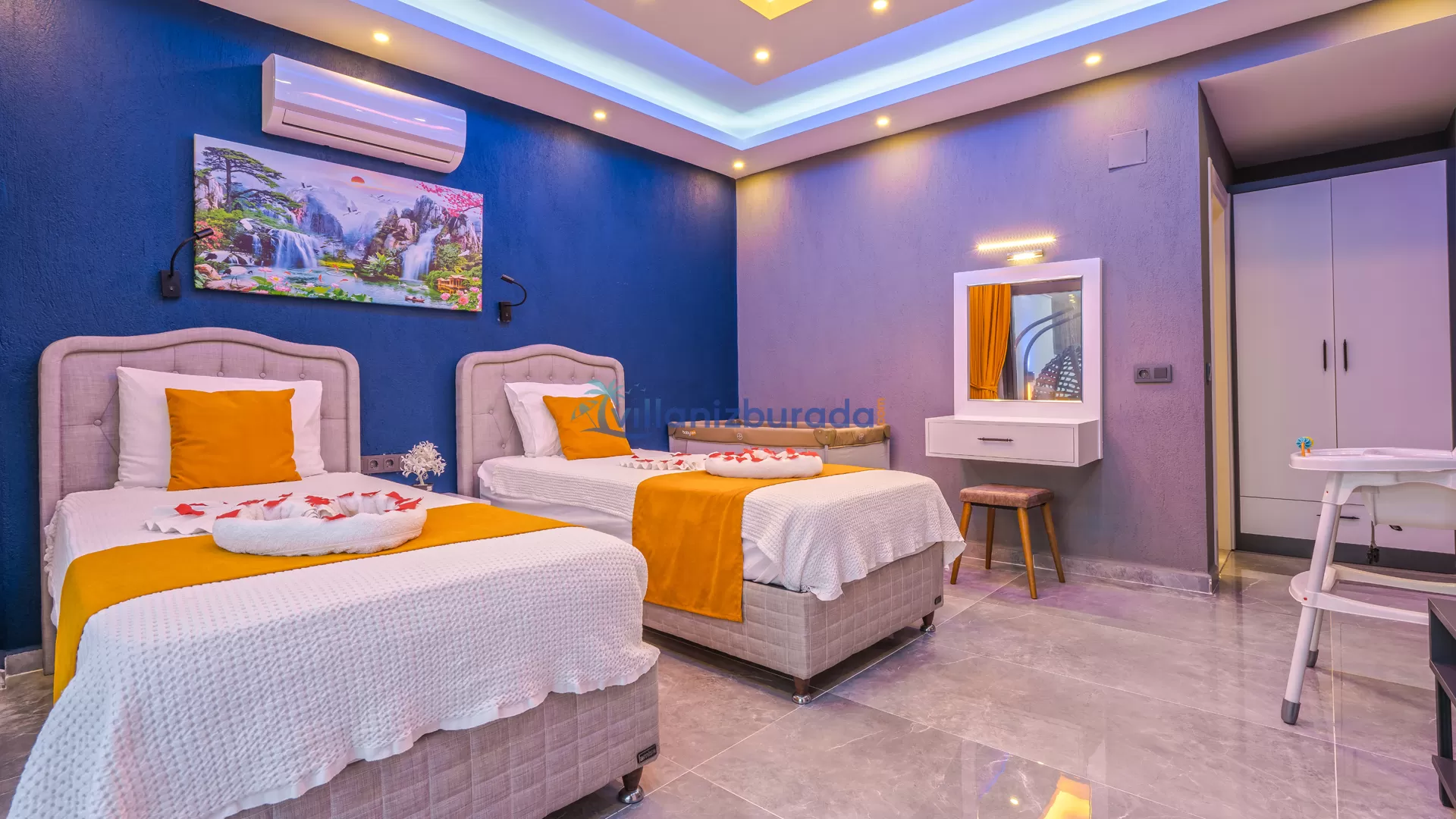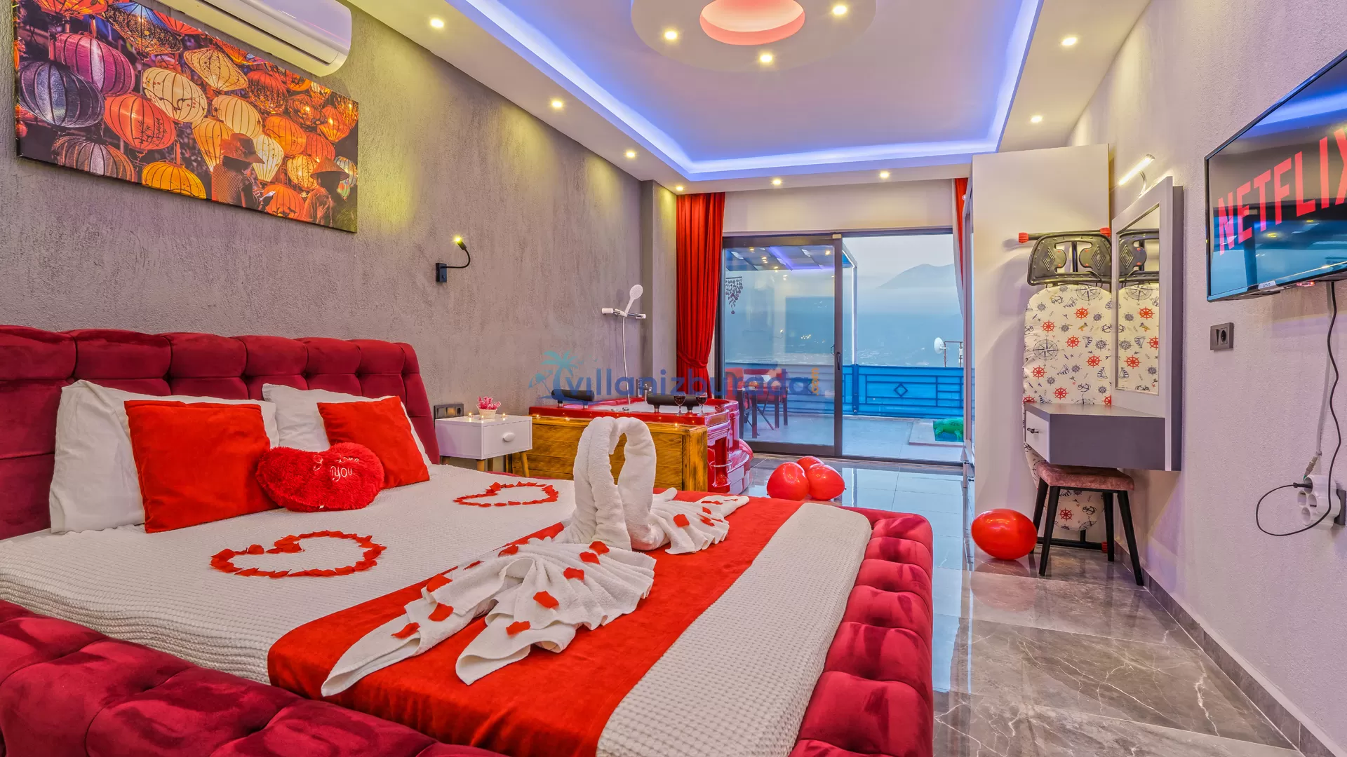 It is located in Yeşilköy location of Kalkan region. Due to its location, it is among the options with nature views and is approximately 10 minutes away from Kalkan city center and the sea by private vehicle. It has 2 bedrooms and can accommodate a total of 4 people. Villa Göktaşı, which has twin villas, is located on the side. It is very suitable for 2 families who want to holiday together.