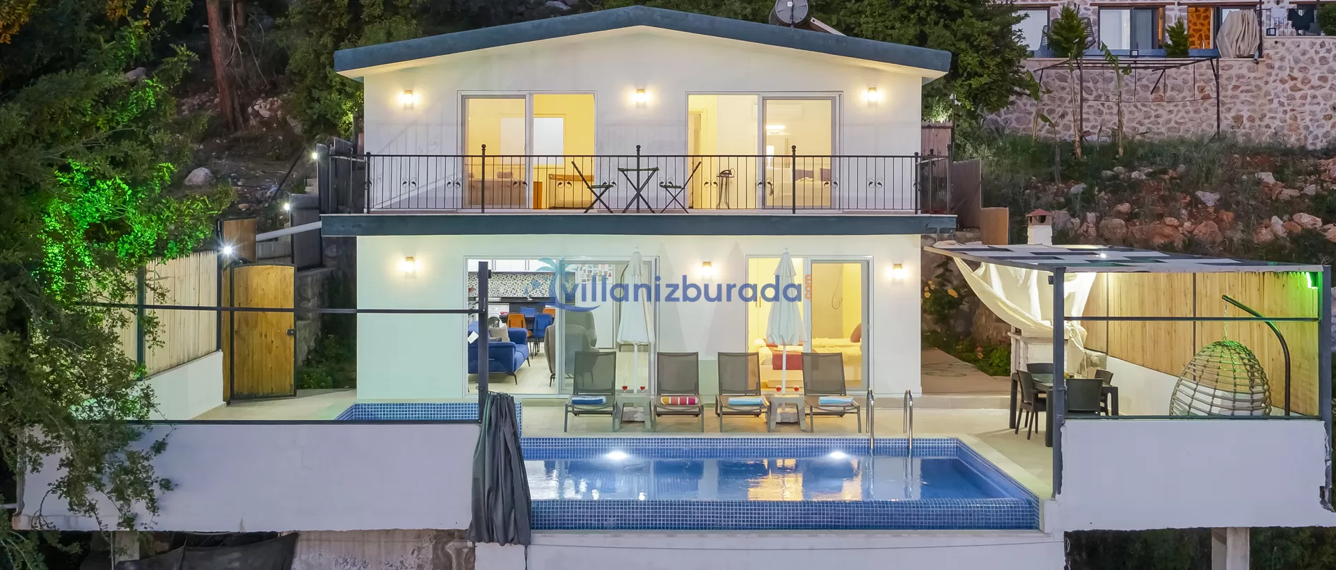 Kaş Kalkan Üzümlü mevkiinde yer alan Villa Karbeyaz 4 kişi kapasiteli olup doğa manzaralıdır. Havuz etrafı korunaklı hale getirilen, jakuzisi ve her türlü ayrıntısı düşünülen Villa Karbeyaz siz değerli misafirlerimizi beklemektedir. Doğa ile iç içe huzur dolu tatil yapmak için oldukça ideal bir ortama sahiptir.